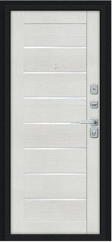 Дверь Браво Техно/BChrome Букле черное/Bianco Melinga - недорогая эконом класса по цене 4 643 руб., отлично подходит для временной установки в квартиру под сдачу, строительство, ремонт. Не смотря стоимость, модель хорошего качества.